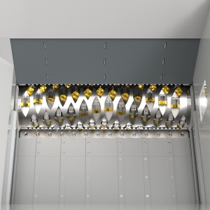 + Separate sieves, can be replaced independently. Specific sieve aperture to ensure discharging size. + Installing shock absorbers to make them shred smoothly.